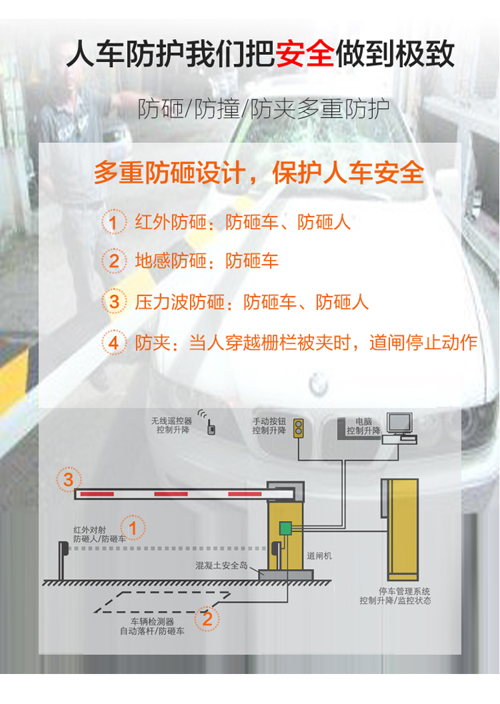二欄柵欄數(shù)字道閘-B型,在直桿道閘的基礎(chǔ)上再加上一根橫欄,整體由道閘箱體和二欄柵欄組成。桿長最多4.5米,閘機(jī)升降速度在1秒、1.5秒、2秒、3秒、4秒之間可選。二欄柵欄同時(shí)具備兩大優(yōu)勢:1、外形美觀大方;2、防止人員直接從閘桿下方鉆進(jìn)鉆出。富有人性化設(shè)計(jì)的二欄柵欄數(shù)字道閘,可以有效防止閘桿抖動(dòng),避免意外事件發(fā)生。道閘與大手各類停車系統(tǒng)都能完美匹配,是停車管理系統(tǒng)的得力助手。