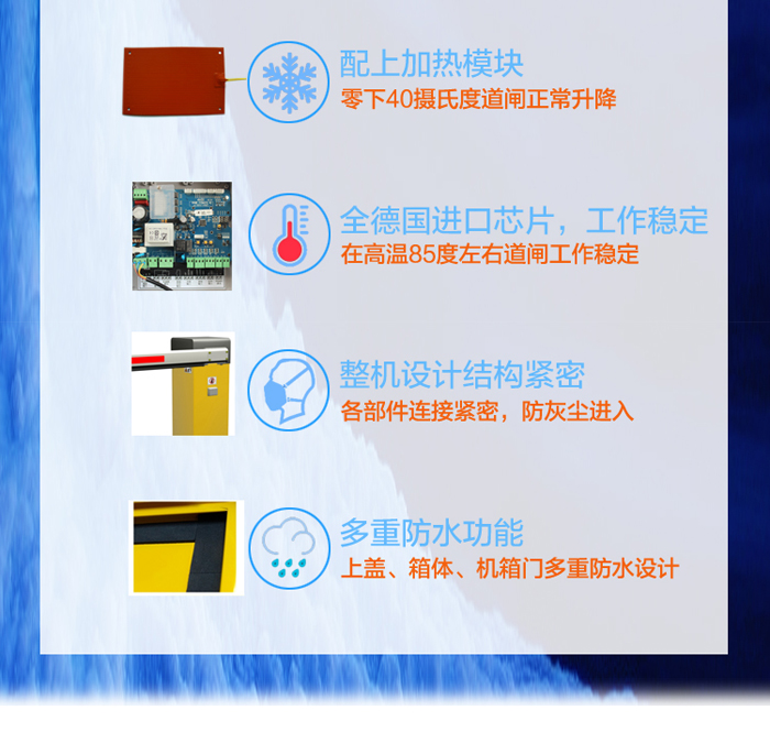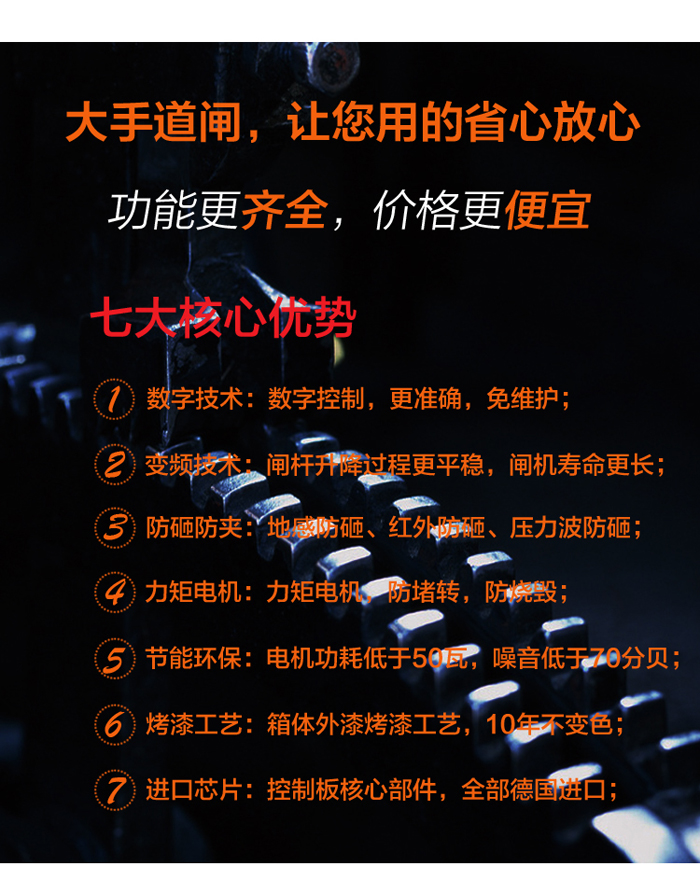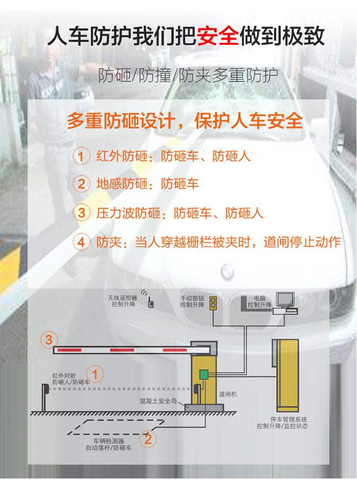 三欄柵欄數(shù)字道閘-B型,外觀結(jié)構(gòu)由三欄柵欄和道閘箱體組成,美觀實(shí)用。三欄道閘采用100W的一體化減速力矩電機(jī),堵轉(zhuǎn)時(shí)無(wú)電流沖擊,無(wú)過(guò)熱,保護(hù)延長(zhǎng)控制器的使用壽命。由于是三欄柵欄的原因,其升降速度需要緩慢一些;加上三欄道閘最大優(yōu)勢(shì),可以防止人員從柵欄底下進(jìn)出和柵欄上方跨進(jìn)跨出過(guò)功率大主要安裝在各車輛進(jìn)出收費(fèi)口;因此該道閘非常適合一些較為高檔、隱蔽性需求性強(qiáng)的停車管理場(chǎng)合。