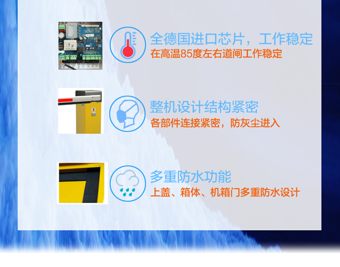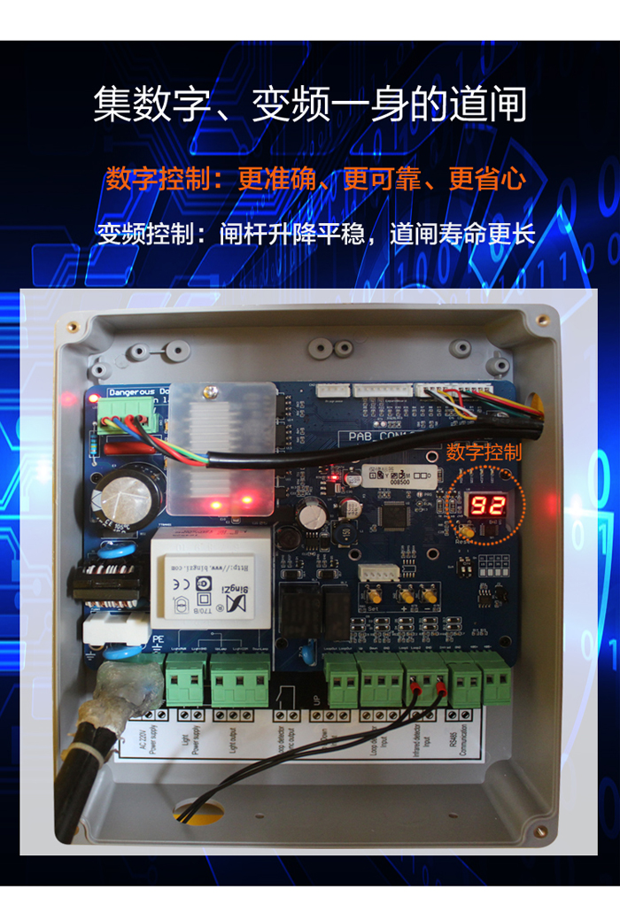 高速直桿防撞數(shù)字道閘-B型,在國內(nèi)停車道閘系統(tǒng)中最先進(jìn)智能的一款道閘系統(tǒng)。該款道閘最吸引客戶的優(yōu)勢就是:防撞。系統(tǒng)原理:防撞道閘是在直桿道閘設(shè)備的基礎(chǔ)上進(jìn)行全面開發(fā)升級,在閘桿與機(jī)箱的結(jié)合處增設(shè)防撞桿把罩,當(dāng)閘桿出現(xiàn)沖撞時,防撞桿把罩能起到一定的緩沖作用,保護(hù)箱體和閘桿不易被撞壞。系統(tǒng)優(yōu)勢:配備高端、質(zhì)量上乘的電機(jī),升降速度最短可為1秒,機(jī)體外殼采用鋼板進(jìn)行保護(hù),保障了高速直桿防撞數(shù)字道閘-B型的耐用程度,是高速公路的停車管理系統(tǒng)的配套首選。